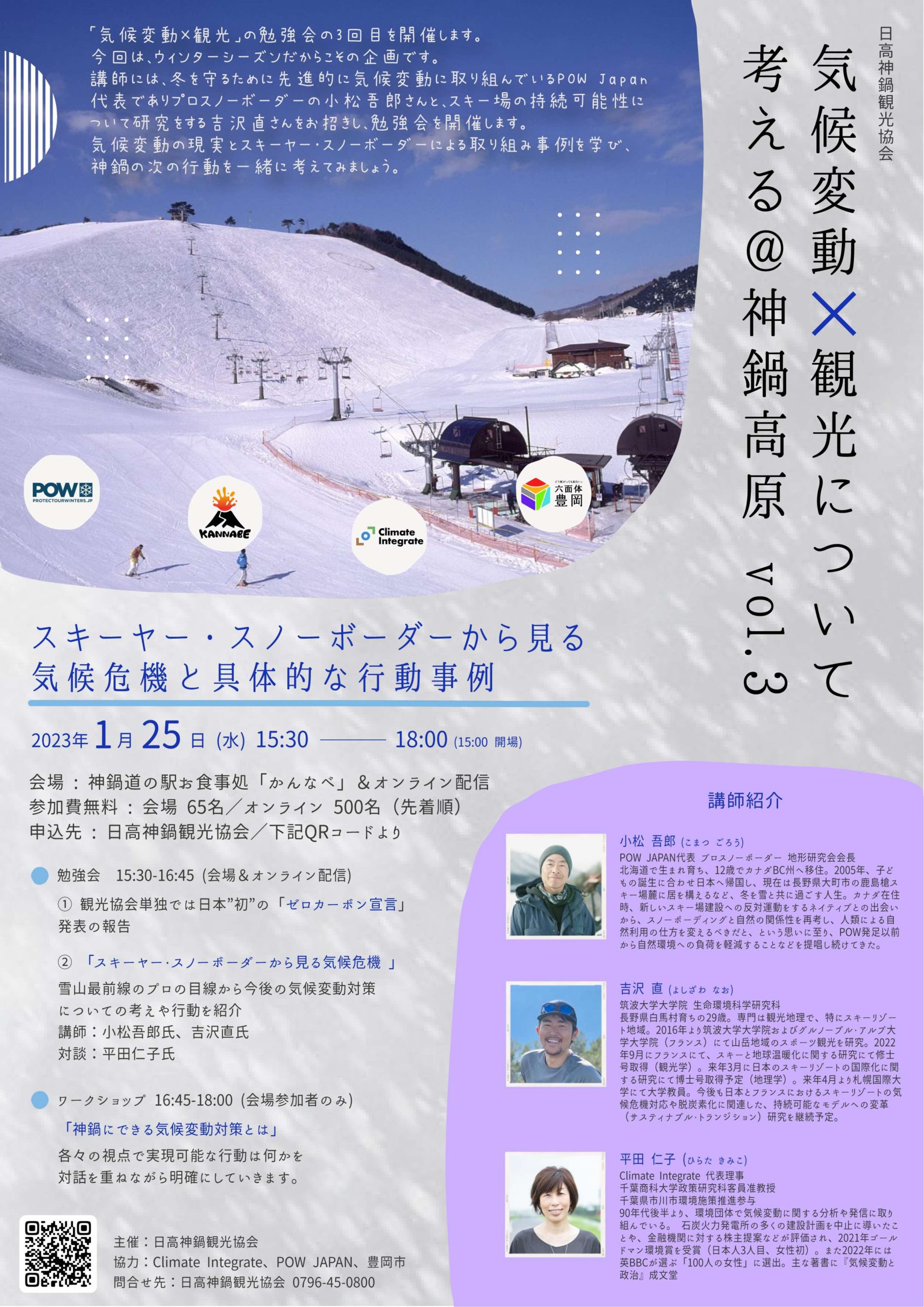 気候変動の現実とスキーヤー・スノーボーダーによる取り組み事例を学び、神鍋の次の行動を一緒に考えてみませんか。
