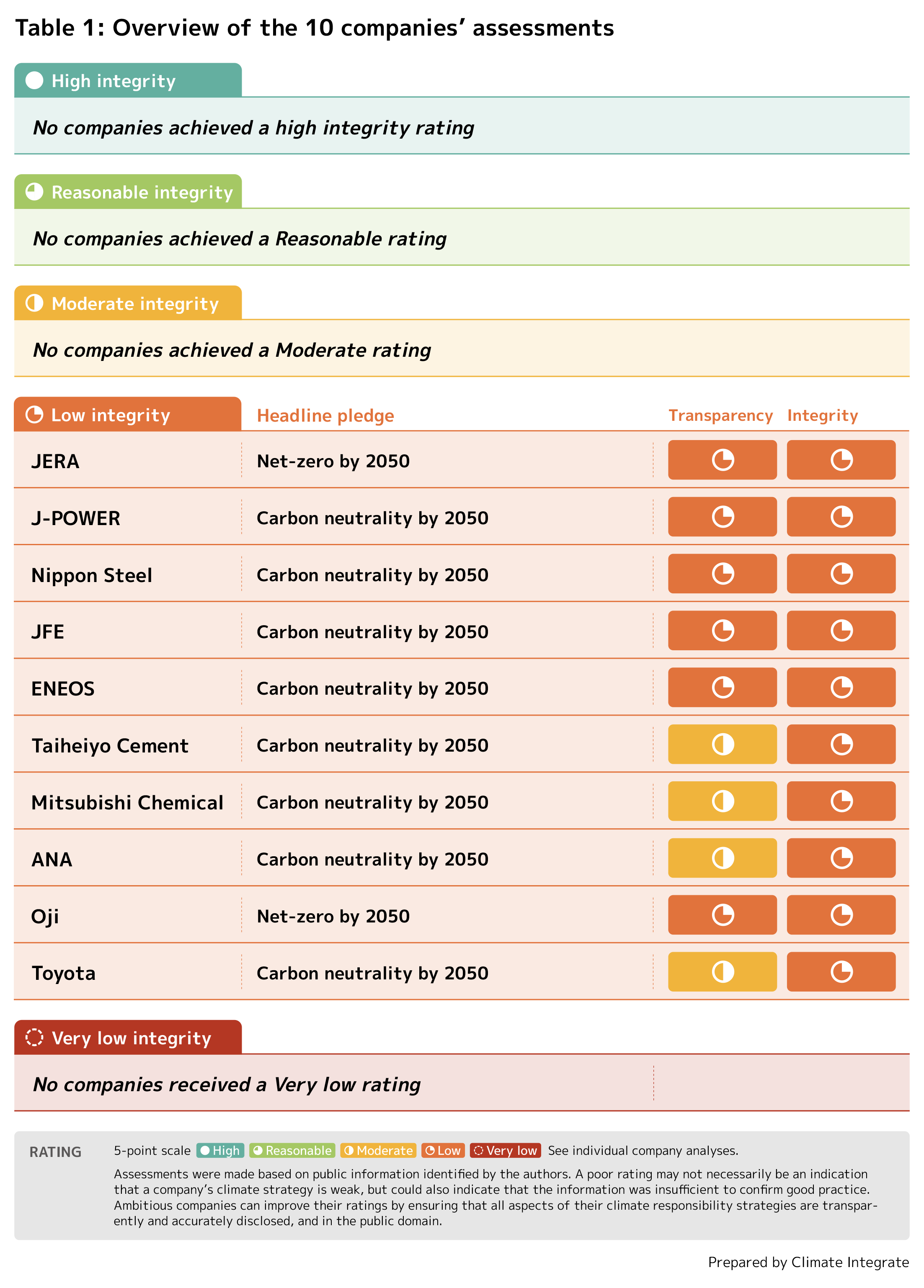 - Climate strategies of all 10 companies rank low in integrity.
