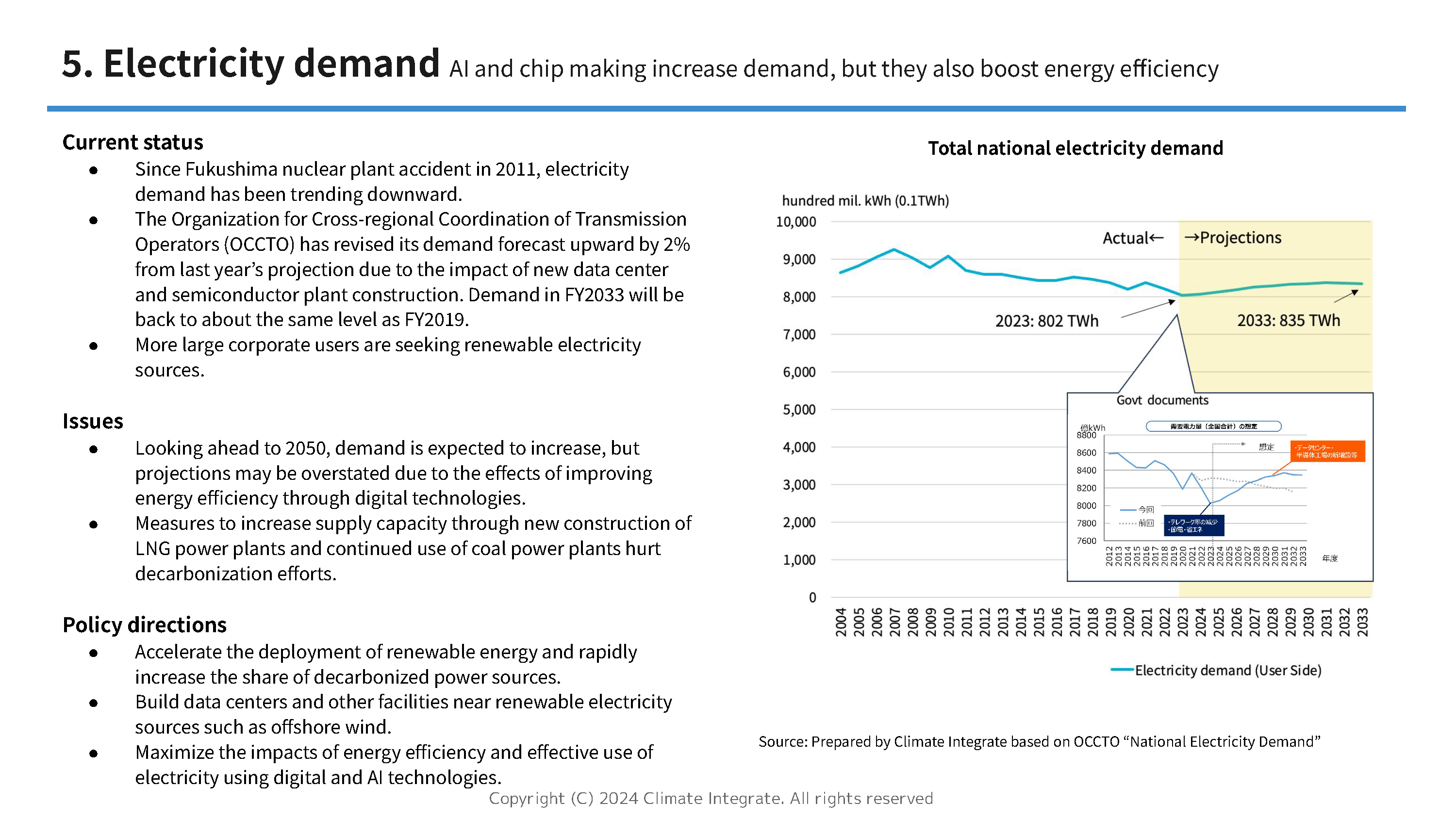 Below we have compiled key facts and issues for these discussions about climate and energy policies, covering current status, issues, and policy directions for each topic. We intend to add more content as needed. (This version July 25, 2024)