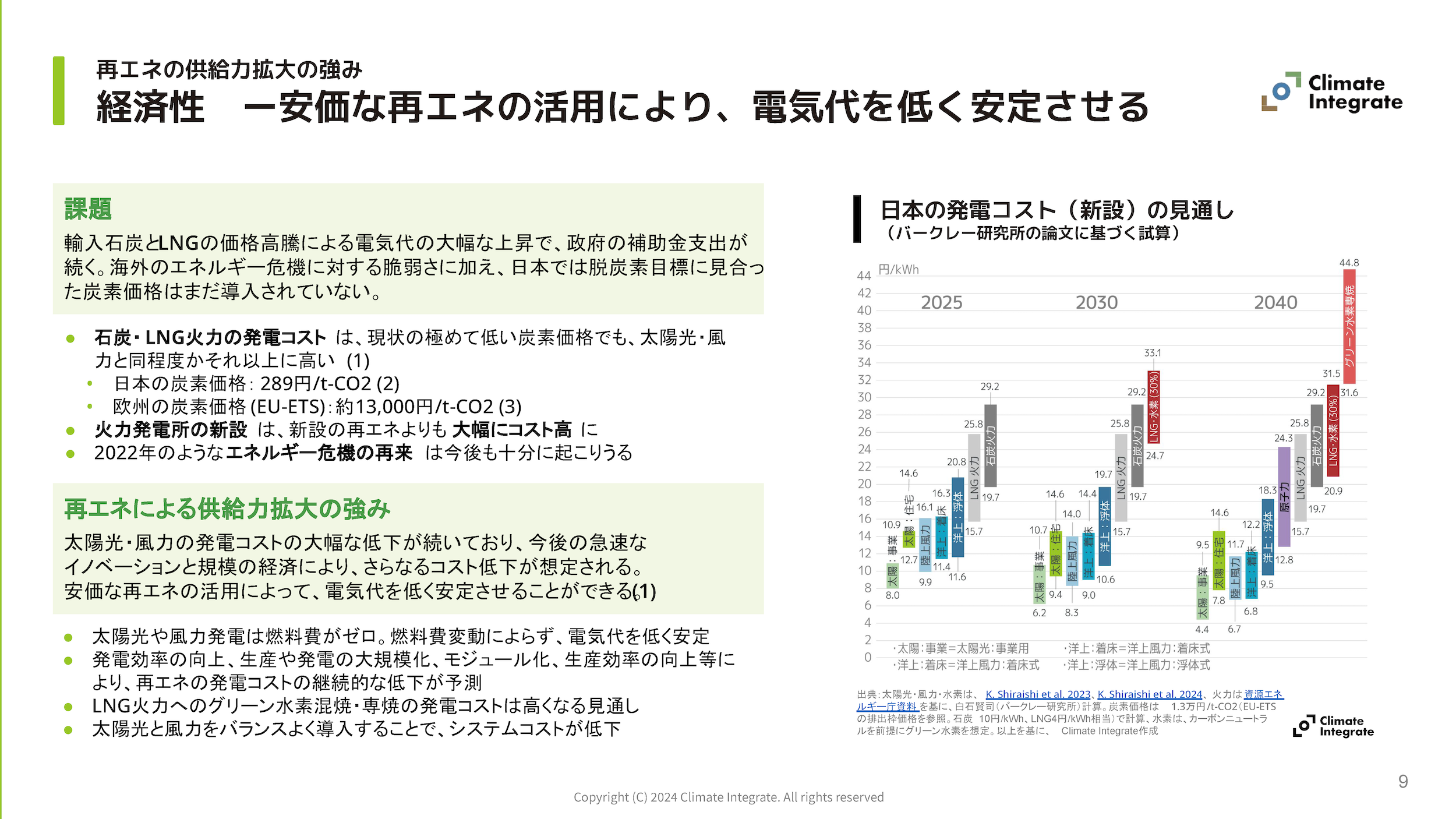 1. 経済性 ー安価な再エネの活用により、電気代を低く安定させる