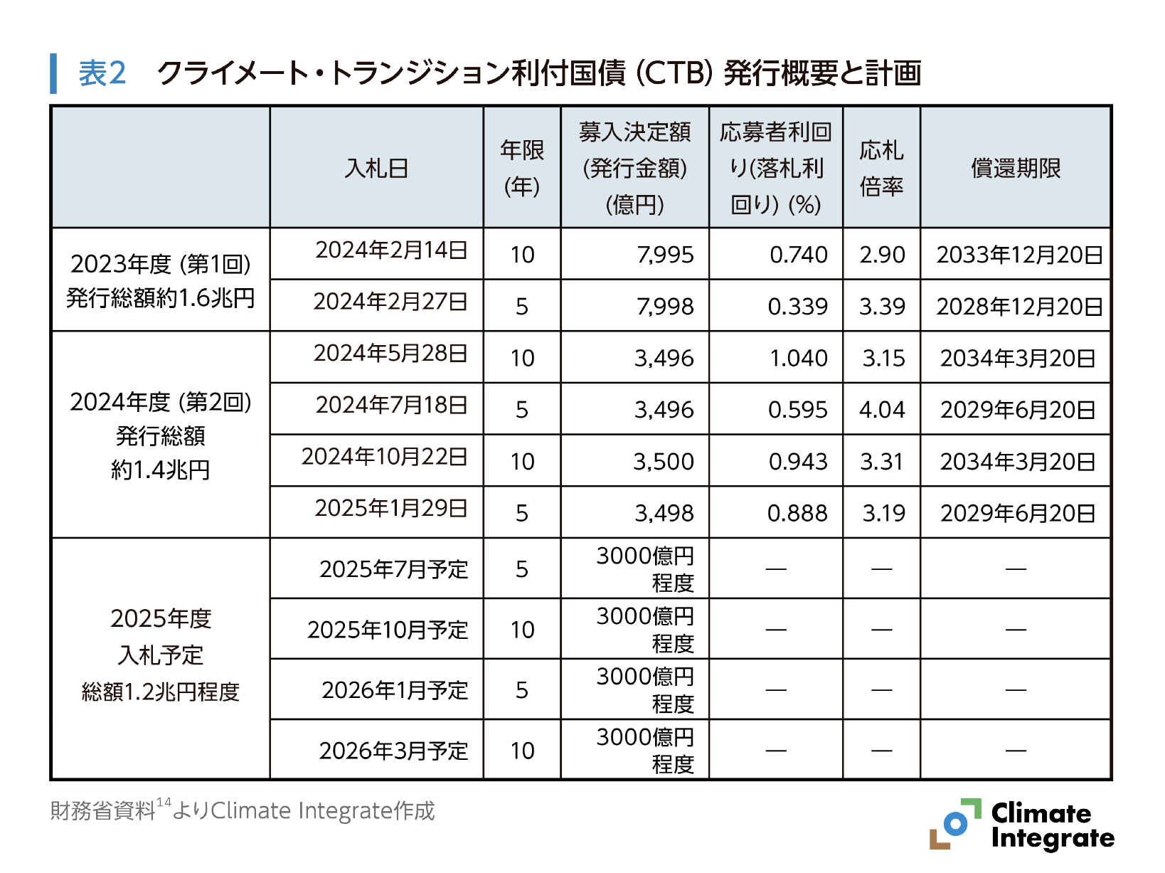 • GX推進対策費の財源であるGX経済移行債は、10年で20兆円発行予定であり、クライメート・トランジション利付国債(個別銘柄として発行されるGX経済移行債)の2023年度の第1回債は計約1.6兆円、2024年度の第2回債は計約1.4兆円が発行され、2025年度は1.2兆円程度の発行が予定されている。年々、発行額は減少している。