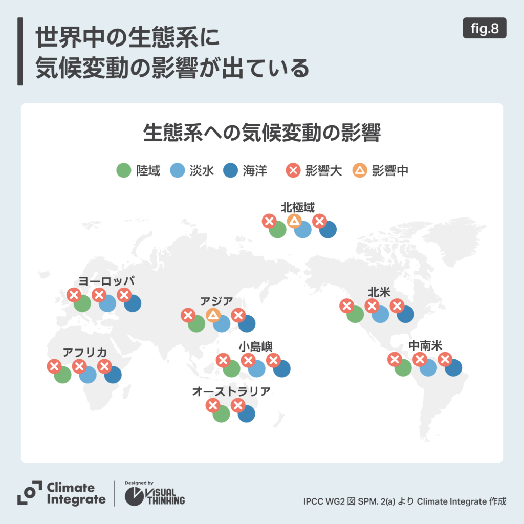 気候変動は、陸地や淡水、沿岸や海の生態系に、重大な損害やあと戻りができない損失を引き起こしています。また気候変動が及ぼす影響の範囲や規模は、以前よりも大きくなっています。